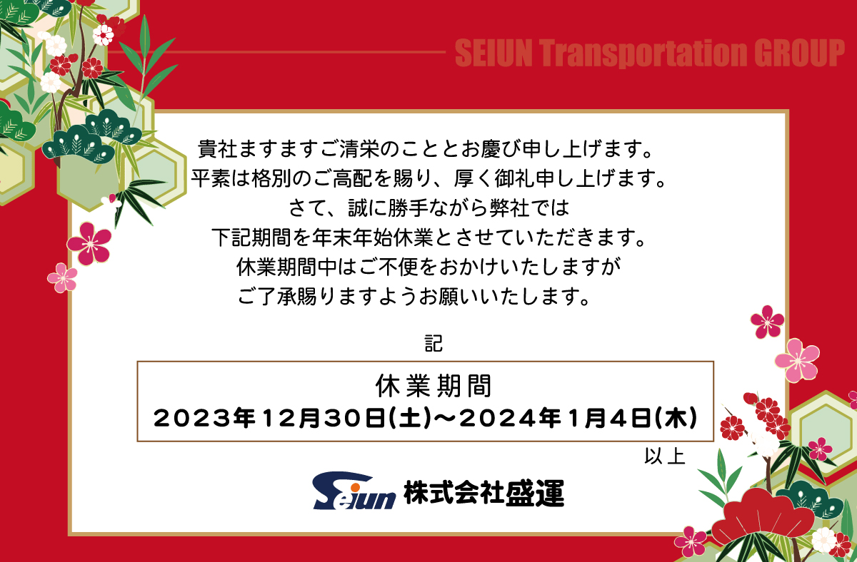 休業期間 :2023年12月30日(土)~2024年1月4日(木)