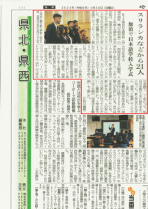 4月28日(日)の埼玉新聞に、KJS東京日本語学校の5期生入学式に関する記事が掲載されました。弊社の社長が理事長を務めるこの学校は、日本と海外を結ぶ重要な架け橋としての役割を果たしています。これまでにも、多くの学生がこの学校を通じて日本の文化や言語を学び、国際交流の場を広げてきました。今後も、さらなる発展を目指していきますので、皆様のご理解とご支援を心より宜しくお願い申し上げます。